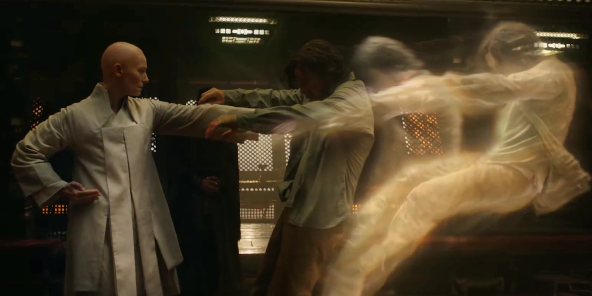 The strange visuals in turn also provides us something different as far as the action scenes go. We've gotten used to the idea of magical action being similar to Harry Potter, with magic bolts or whathaveyou being flung back and forth by our heroes and villains. It can definitely get boring after a while. In this film the magic is derived less from spells and more from the alteration of reality and nature, allowing for very unique fights that we haven't seen in MCU movies before. At various points in the movie, martial arts are also involved with the usage of wirework and making it a little Wuxia-ish or similar to The Matrix.